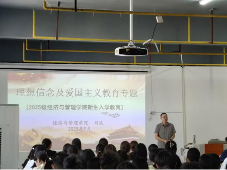 (通讯员:李雅然;审核:刘波)2025年9月8日上午,经济与管理学院2025级新生入学教育专题讲座在揽胜楼1403举行。学院党委副书记刘波以“立报国之志 筑青春之梦”为主题,为全体新生讲授了入学后的“思政第一课”,将理想信念与爱国教育教育深度融合,为新生开启大学生涯锚定方向。